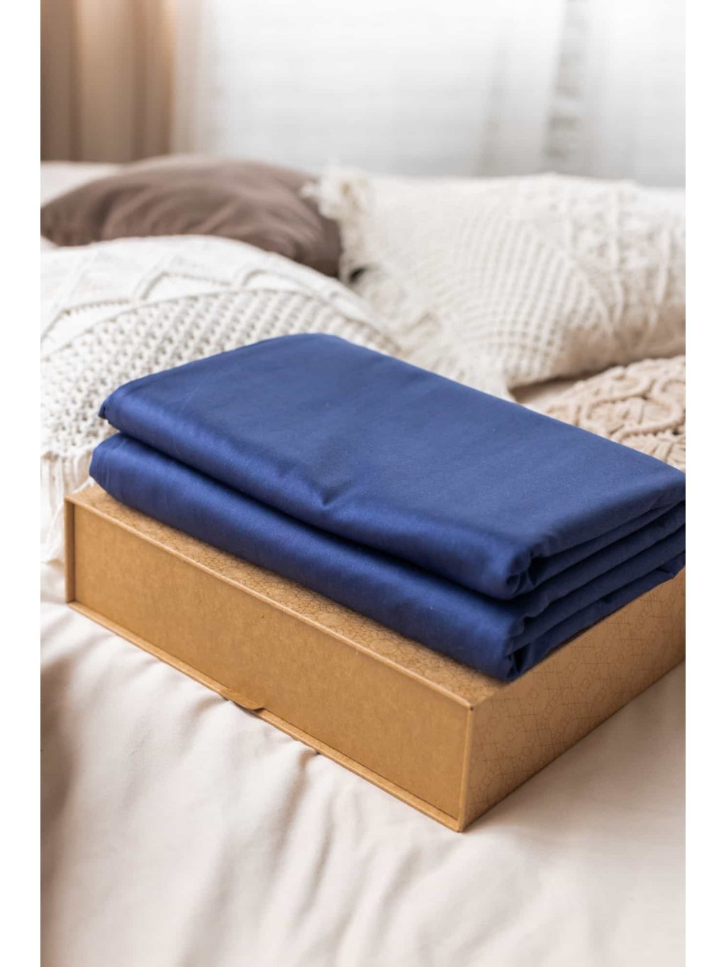 - Gewebe: 100% Baumwollsatin in blauer Farbe