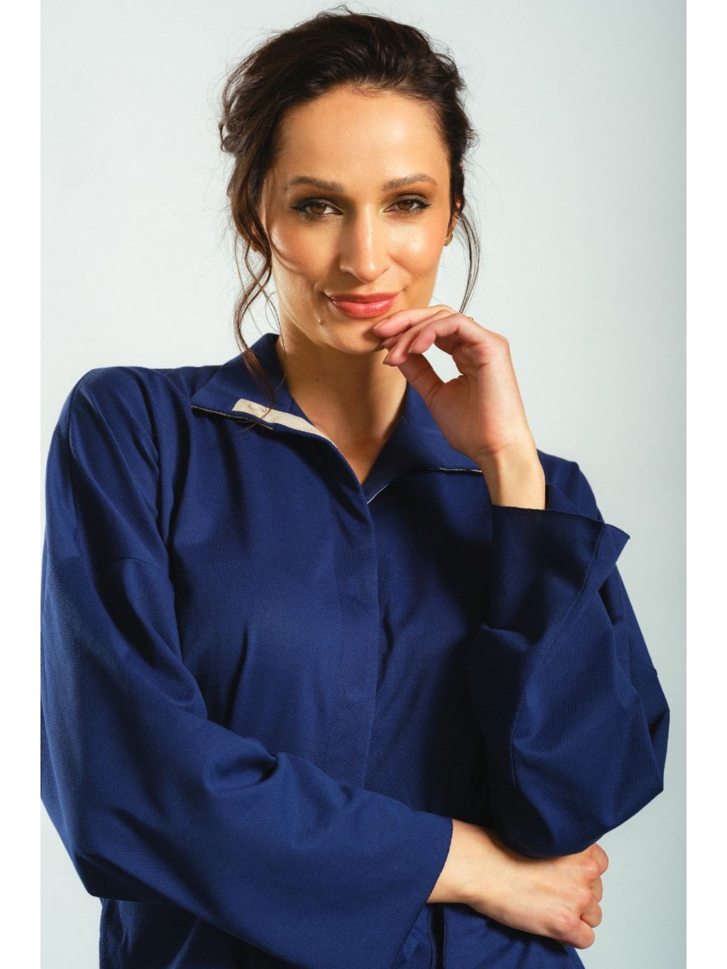 Patentiertes funktionales, antibakterielles Material, das nanotechnologisch veredelten Polyester und Baumwolle kombiniert. Die einzigartige Zusammensetzung erfüllt alle Anforderungen an Funktionalität und bietet gleichzeitig eine angenehme, weiche Haptik. Das Material ist außergewöhnlich leicht und somit ideal für Reisen, da es wenig Platz und Gewicht benötigt und nicht gebügelt werden muss. Getestet im Gesundheitswesen, hautfreundlich, geeignet auch für sehr empfindliche Haut und Haut, die zu Reizungen neigt.