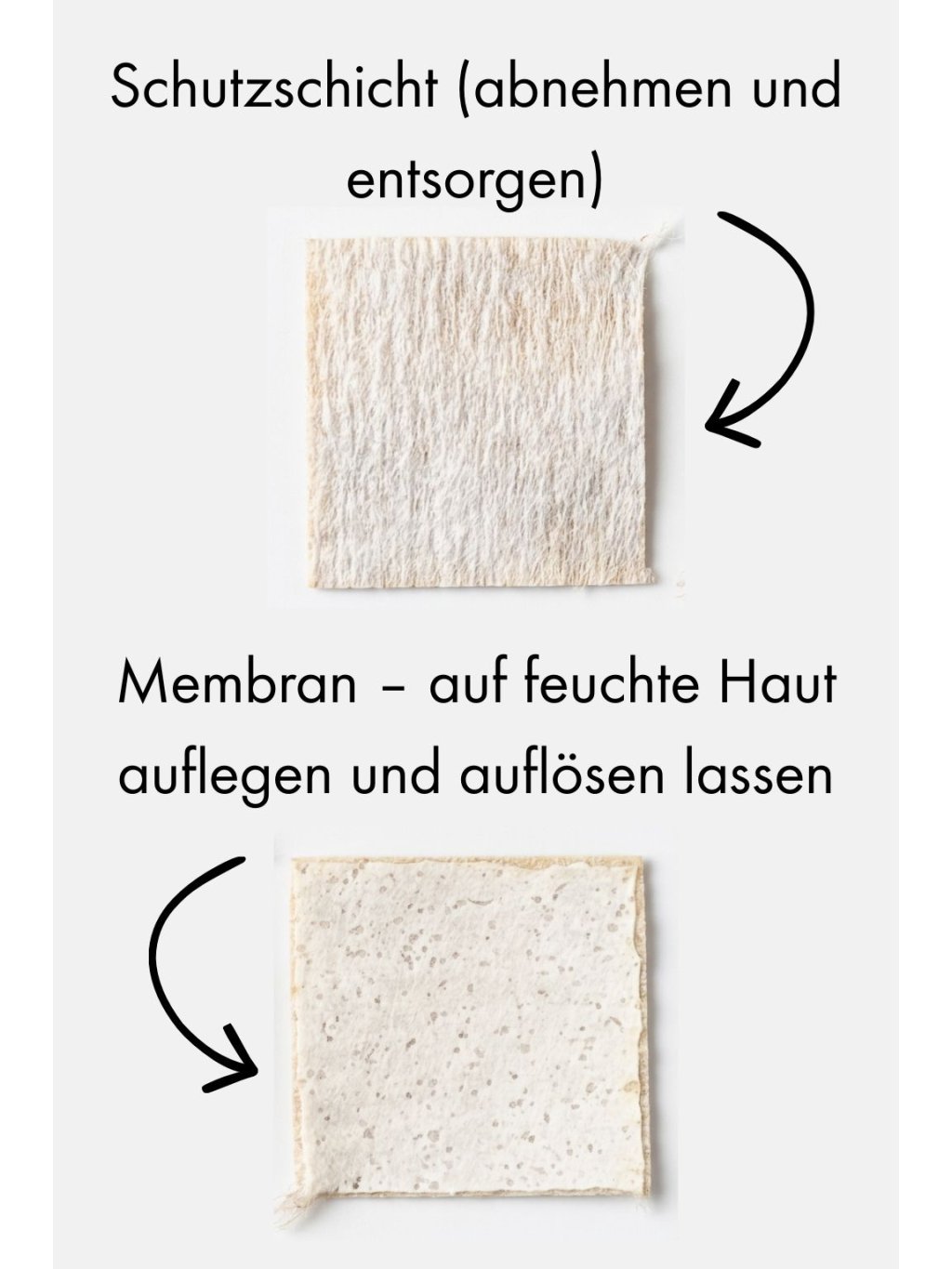 2× pro Tag anwenden. Tragen Sie das kühlende Reinigungsgel mit einem Wattestäbchen oder Finger auf die Einstichstelle auf. Nehmen Sie ein Pflaster aus der Packung, entfernen Sie eine Schutzfolie und platzieren Sie das Nanofaserpflaster auf der betroffenen Stelle. Tragen Sie erneut eine kleine Menge Gel über die Membran auf. Einwirken lassen. Die Membran löst sich innerhalb weniger Minuten auf und kann entfernt werden.